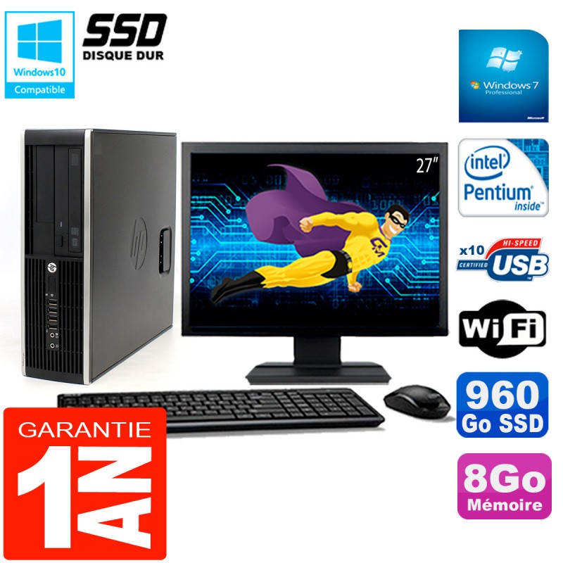 PC HP Compaq Pro 6200 SFF Ecran 27" Intel G840 8Go 960 Go SSD Graveur DVD Wifi W7