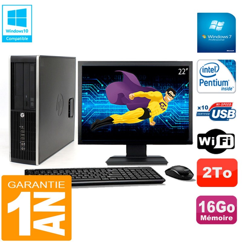 PC HP Compaq Pro 6200 SFF Ecran 22" Intel G840 16Go 2To Graveur Wifi W7