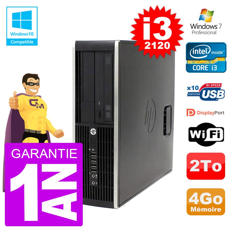 PC HP Elite 6200 SFF - Intel Core I3-2120 3,30 Ghz (3 Mo de cache) - 4 Go DDR3 - Disque Dur 3,5" 2 To - Graveur DVD - Clé WIFI USB - Windows 7 Pro - Garantie 1 an.