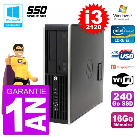 PC HP Elite 6200 SFF - Intel Core I3-2120 3,30 Ghz (3 Mo de cache) - 16 Go DDR3 - Disque Dur SSD 240 Go - Graveur DVD - Clé WIFI USB - Windows 7 Pro - Garantie 1 an.