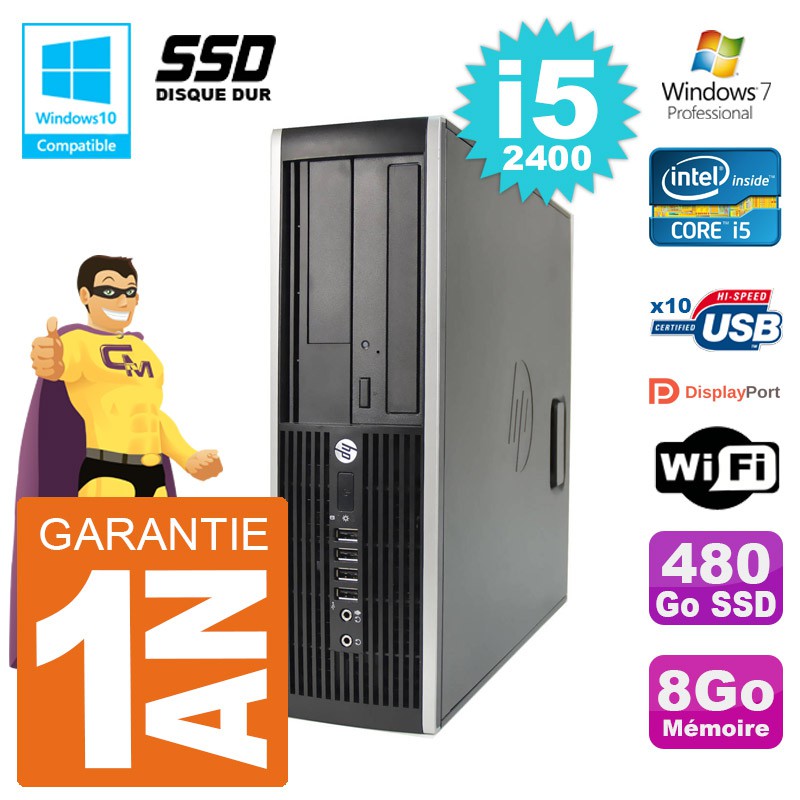PC HP 6200 SFF Intel i5-2400 RAM 8Go SSD 480Go Graveur DVD Wifi W7