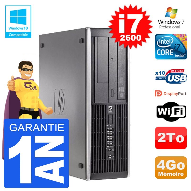 PC HP Elite 6200 SFF - Intel Core I7-2600 3,40 Ghz (8 Mo de cache) - 4 Go DDR3 - Disque Dur 3,5" 2 To - Graveur DVD - Clé WIFI USB - Windows 7 Pro - Garantie 1 an.