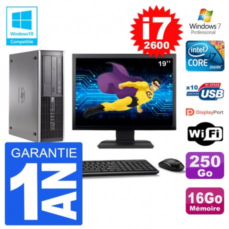 PC HP Elite 6200 SFF - Intel Core I7-2600 3,40 Ghz (8 Mo de cache) - 16 Go DDR3 - Disque Dur 3,5" 250 Go - Graveur DVD - Clé WIFI USB - Windows 7 Pro - Livré avec Ecran 19" + clavier + souris (Marques et modèles selon arrivages) - Garantie 1 an.