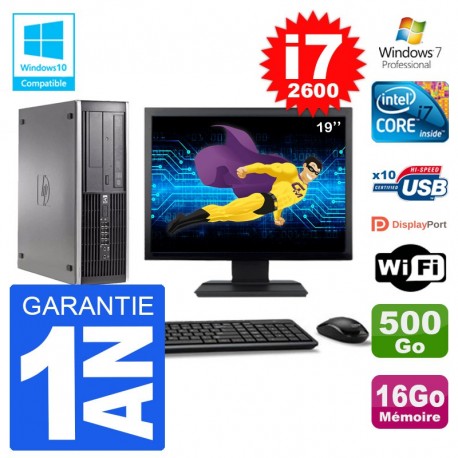 PC HP Elite 6200 SFF - Intel Core I7-2600 3,40 Ghz (8 Mo de cache) - 16 Go DDR3 - Disque Dur 3,5" 500 Go - Graveur DVD - Clé WIFI USB - Windows 7 Pro - Livré avec Ecran 19" + clavier + souris (Marques et modèles selon arrivages) - Garantie 1 an.