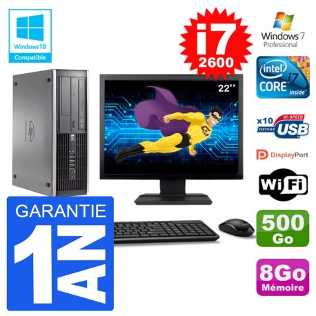 PC HP 6200 SFF Ecran 22" Intel i7-2600 RAM 8Go Disque 500Go Graveur DVD Wifi W7