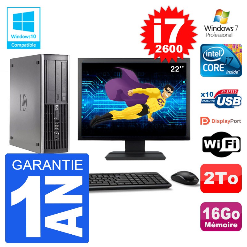 PC HP 6200 SFF Ecran 22" Intel i7-2600 RAM 16Go Disque 2To Graveur DVD Wifi W7