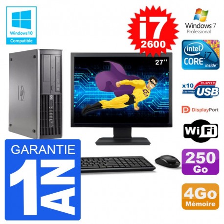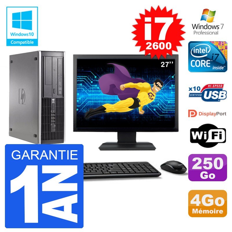 PC HP Elite 6200 SFF - Intel Core I7-2600 3,40 Ghz (8 Mo de cache) - 4 Go DDR3 - Disque Dur 3,5" 250 Go - Graveur DVD - Clé WIFI USB - Windows 7 Pro - Livré avec Ecran 27" + clavier + souris (Marques et modèles selon arrivages) - Garantie 1 an.