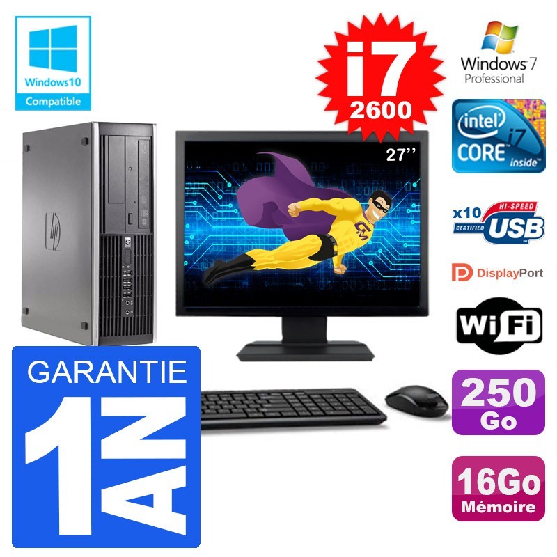 PC HP Elite 6200 SFF - Intel Core I7-2600 3,40 Ghz (8 Mo de cache) - 16 Go DDR3 - Disque Dur 3,5" 250 Go - Graveur DVD - Clé WIFI USB - Windows 7 Pro - Livré avec Ecran 27" + clavier + souris (Marques et modèles selon arrivages) - Garantie 1 an.