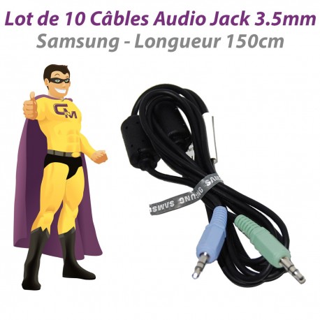 Lot de 10 Câbles Adaptateurs Audio Jack 3.5 mm Mâle - Samsung - P/N BN39-00061C / BN39-01286A - Longueur 150 cm - Couleur Noir - Garantie 6 mois