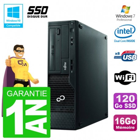 PC Fujitsu Esprimo E500 E85+ DT G640 RAM 16Go SSD 120Go DVD Wifi W7