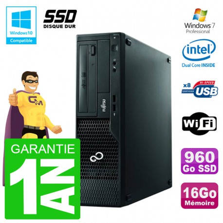 PC Fujitsu Esprimo E500 E85+ DT - Intel Pentium Dual-Core G640 2.8 Ghz (Cache 3 Mo) - 16 Go DDR3 - Disque Dur SSD 960 Go - Graveur DVD - Clé WIFI USB - Windows 7 Pro - Garantie 1 an