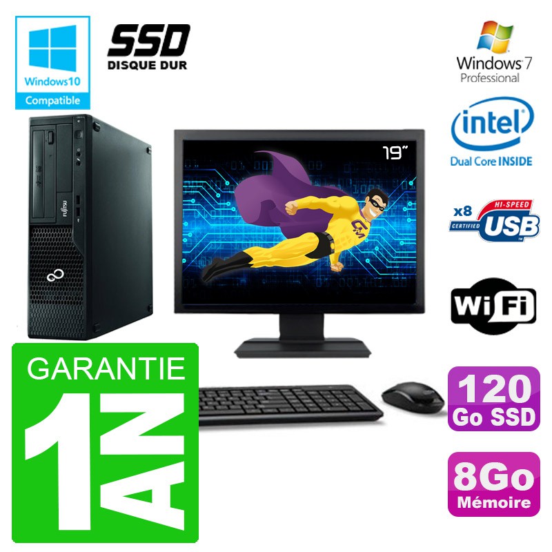PC Fujitsu Esprimo E500 E85+ DT Ecran 19" G640 RAM 8Go SSD 120Go DVD Wifi W7