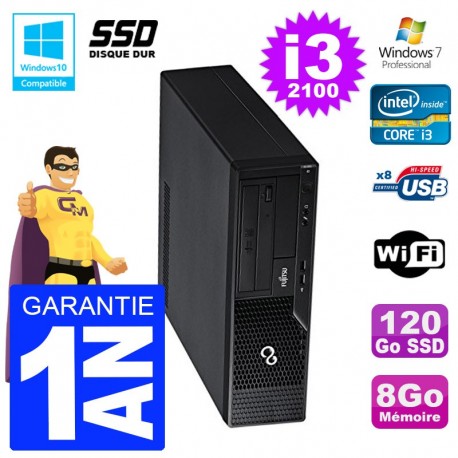 PC Fujitsu Esprimo E500 E85+ DT - Intel Core I3-2100 3.1 Ghz (Cache 3 Mo) - 8 Go DDR3 - Disque Dur SSD 120 Go - Graveur DVD - Clé WIFI USB - Windows 7 Pro - Garantie 1 an