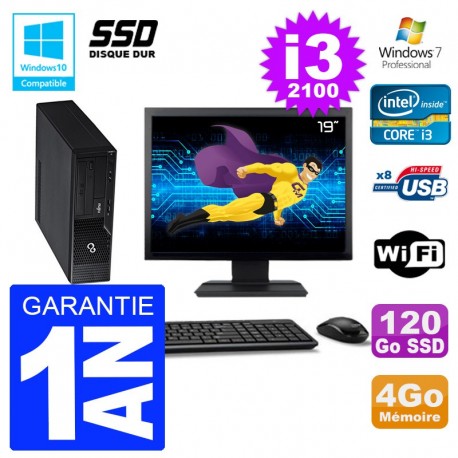 PC Fujitsu Esprimo E500 E85+ DT - Intel Core I3-2100 3.1 Ghz (Cache 3 Mo) - 4 Go DDR3 - Disque Dur SSD 120 Go - Graveur DVD - Clé WIFI USB - Windows 7 Pro - Avec Ecran 19" + clavier + souris (Marques et modèles variables) - Garantie 1 an