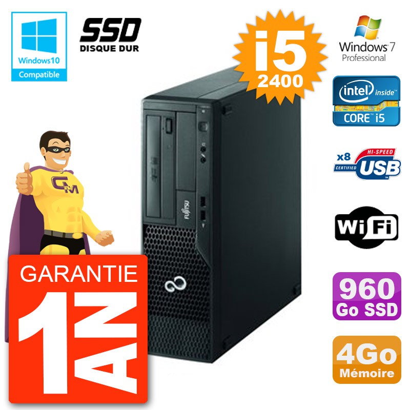 PC Fujitsu Esprimo E500 E85+ DT - Intel Core I5-2400 3.1 Ghz (Cache 6 Mo) - 4 Go DDR3 - Disque Dur SSD 960 Go - Graveur DVD - Clé WIFI USB - Windows 7 Pro - Garantie 1 an