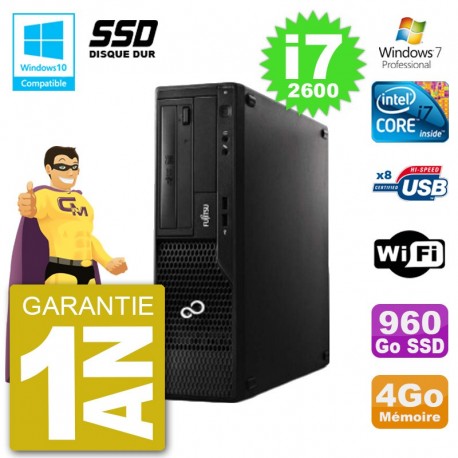 PC Fujitsu Esprimo E500 E85+ DT - Intel Core I7-2600 3.4 Ghz (Cache 8 Mo) - 4 Go DDR3 - Disque Dur SSD 960 Go - Graveur DVD - Clé WIFI USB - Windows 7 Pro - Garantie 1 an