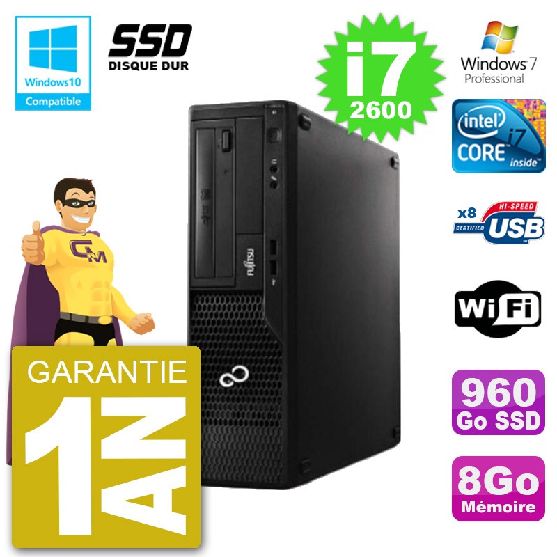 PC Fujitsu Esprimo E500 E85+ DT - Intel Core I7-2600 3.4 Ghz (Cache 8 Mo) - 8 Go DDR3 - Disque Dur SSD 960 Go - Graveur DVD - Clé WIFI USB - Windows 7 Pro - Garantie 1 an