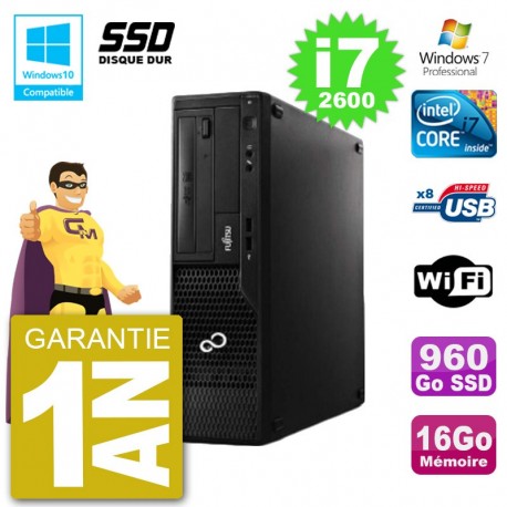 PC Fujitsu Esprimo E500 E85+ DT - Intel Core I7-2600 3.4 Ghz (Cache 8 Mo) - 16 Go DDR3 - Disque Dur SSD 960 Go - Graveur DVD - Clé WIFI USB - Windows 7 Pro - Garantie 1 an