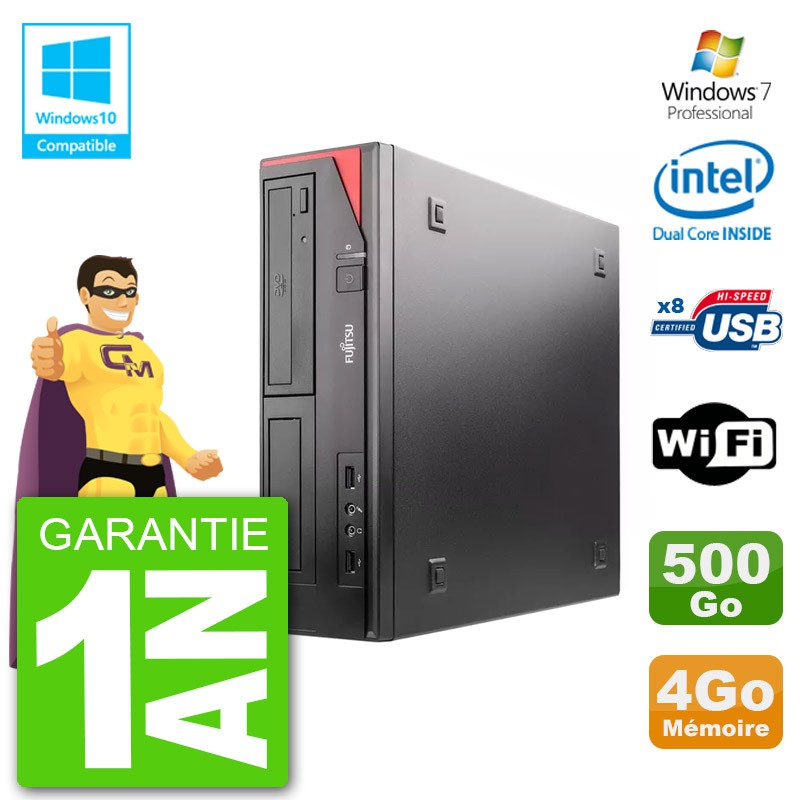 PC Fujitsu Esprimo E520 DT - Intel Dual-Core G3220 3.0 Ghz (Cache 3 Mo) - 4 Go DDR3 - Disque Dur 3,5" 500 Go - Graveur DVD - Clé WIFI USB - Windows 7 Pro - Garantie 1 an