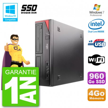PC Fujitsu Esprimo E520 DT - Intel Dual-Core G3220 3.0 Ghz (Cache 3 Mo) - 4 Go DDR3 - Disque Dur SSD 960 Go - Graveur DVD - Clé WIFI USB - Windows 7 Pro - Garantie 1 an