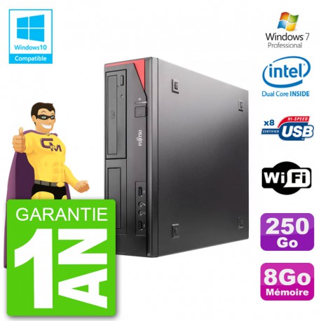 PC Fujitsu Esprimo E520 DT - Intel Dual-Core G3220 3.0 Ghz (Cache 3 Mo) - 8 Go DDR3 - Disque Dur 3,5" 250 Go - Graveur DVD - Clé WIFI USB - Windows 7 Pro - Garantie 1 an