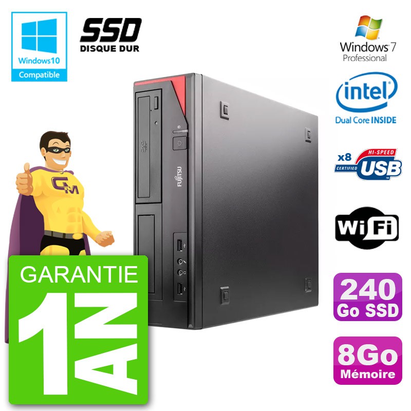 PC Fujitsu Esprimo E520 DT - Intel Dual-Core G3220 3.0 Ghz (Cache 3 Mo) - 8 Go DDR3 - Disque Dur SSD 240 Go - Graveur DVD - Clé WIFI USB - Windows 7 Pro - Garantie 1 an