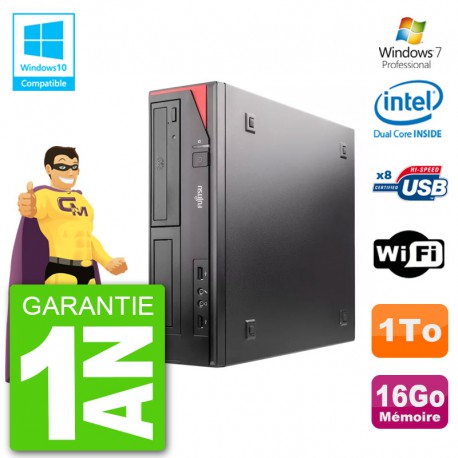 PC Fujitsu Esprimo E520 DT - Intel Dual-Core G3220 3.0 Ghz (Cache 3 Mo) - 16 Go DDR3 - Disque Dur 3,5" 1 To - Graveur DVD - Clé WIFI USB - Windows 7 Pro - Garantie 1 an