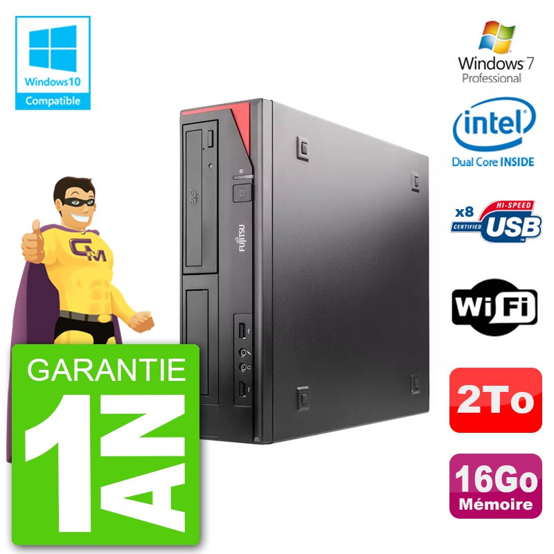 PC Fujitsu Esprimo E520 DT - Intel Dual-Core G3220 3.0 Ghz (Cache 3 Mo) - 16 Go DDR3 - Disque Dur 3,5" 2 To - Graveur DVD - Clé WIFI USB - Windows 7 Pro - Garantie 1 an