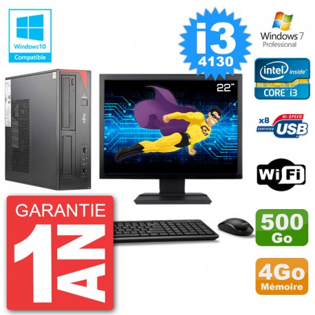 PC Fujitsu Esprimo E520 Ecran 22" i3-4130 RAM 4Go 500Go Graveur DVD Wifi W7