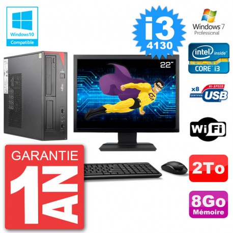 PC Fujitsu Esprimo E520 Ecran 22" i3-4130 RAM 8Go Disque 2To Graveur DVD Wifi W7