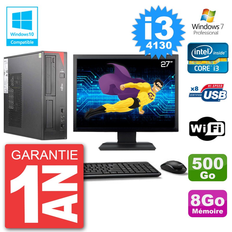 PC Fujitsu Esprimo E520 DT - Intel Core I3-4130 3.4 Ghz (Cache 3 Mo) - 8 Go DDR3 - Disque Dur 3,5" 500 Go - Graveur DVD - Clé WIFI USB - Windows 7 Pro - Livré avec Ecran 27" + clavier + souris (Marques et modèles variables) - Garantie 1 an
