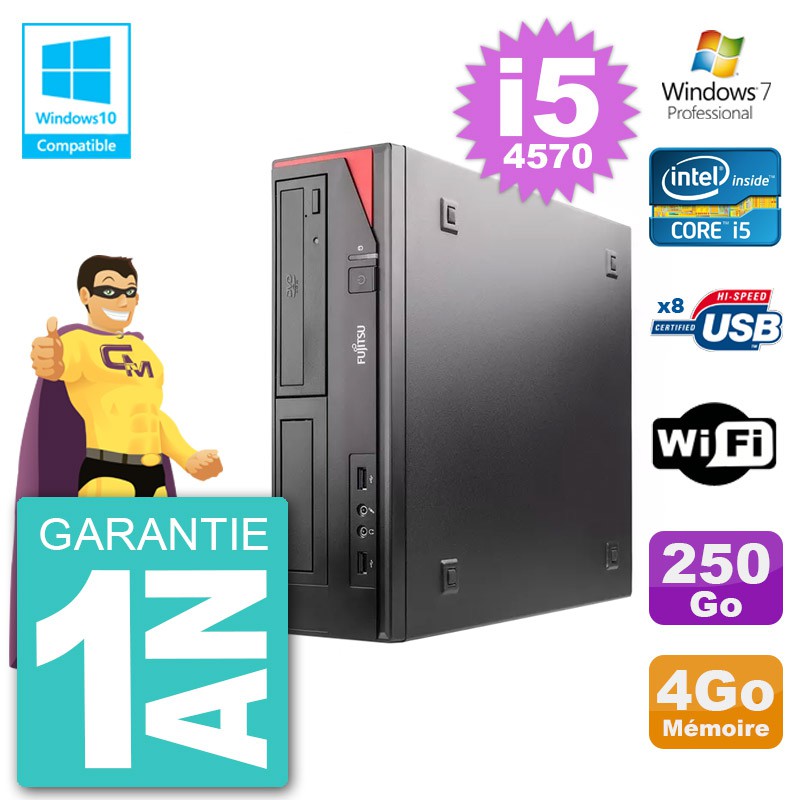 PC Fujitsu Esprimo E520 DT - Intel Core I5-4570 3.2 Ghz (Cache 6 Mo) - 4 Go DDR3 - Disque Dur 3,5" 250 Go - Graveur DVD - Clé WIFI USB - Windows 7 Pro - Garantie 1 an
