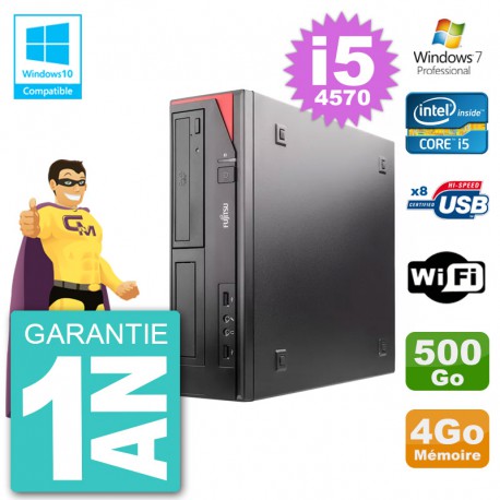 PC Fujitsu Esprimo E520 DT - Intel Core I5-4570 3.2 Ghz (Cache 6 Mo) - 4 Go DDR3 - Disque Dur 3,5" 500 Go - Graveur DVD - Clé WIFI USB - Windows 7 Pro - Garantie 1 an