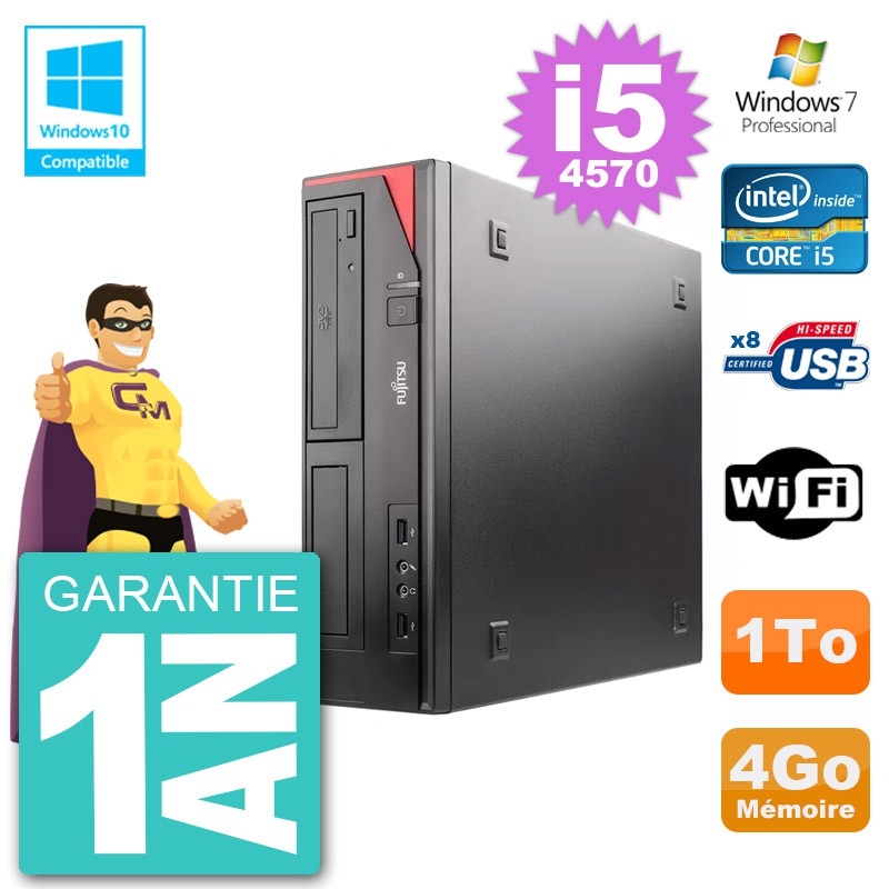 PC Fujitsu Esprimo E520 DT i5-4570 RAM 4Go Disque Dur 1To Graveur DVD Wifi W7