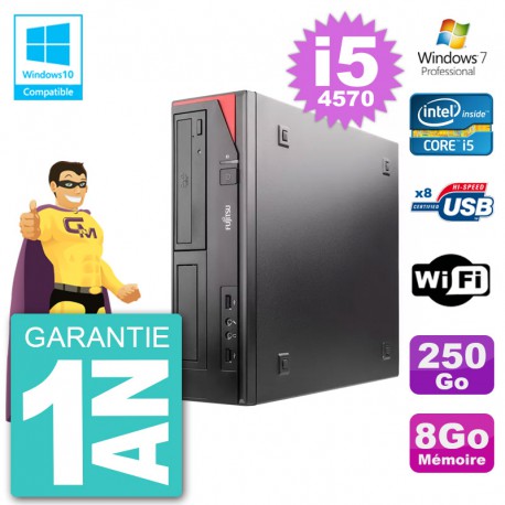 PC Fujitsu Esprimo E520 DT - Intel Core I5-4570 3.2 Ghz (Cache 6 Mo) - 8 Go DDR3 - Disque Dur 3,5" 250 Go - Graveur DVD - Clé WIFI USB - Windows 7 Pro - Garantie 1 an