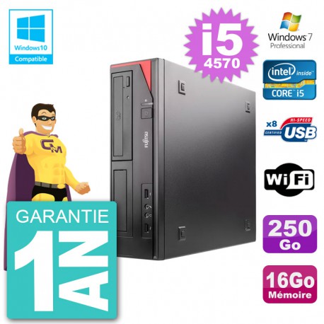 PC Fujitsu Esprimo E520 DT - Intel Core I5-4570 3.2 Ghz (Cache 6 Mo) - 16 Go DDR3 - Disque Dur 3,5" 250 Go - Graveur DVD - Clé WIFI USB - Windows 7 Pro - Garantie 1 an