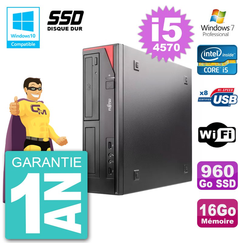PC Fujitsu Esprimo E520 DT i5-4570 RAM 16Go SSD 960Go Graveur DVD Wifi W7