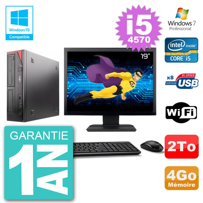 PC Fujitsu Esprimo E520 DT - Intel Core I5-4570 3.2 Ghz (Cache 6 Mo) - 4 Go DDR3 - Disque Dur 3,5" 2 To - Graveur DVD - Clé WIFI USB - Windows 7 Pro - Livré avec Ecran 19" + clavier + souris (Marques et modèles variables) - Garantie 1 an