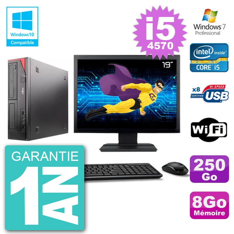 PC Fujitsu Esprimo E520 DT - Intel Core I5-4570 3.2 Ghz (Cache 6 Mo) - 8 Go DDR3 - Disque Dur 3,5" 250 Go - Graveur DVD - Clé WIFI USB - Windows 7 Pro - Livré avec Ecran 19" + clavier + souris (Marques et modèles variables) - Garantie 1 an