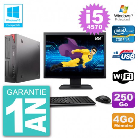 PC Fujitsu Esprimo E520 Ecran 22" i5-4570 RAM 4Go 250Go Graveur DVD Wifi W7