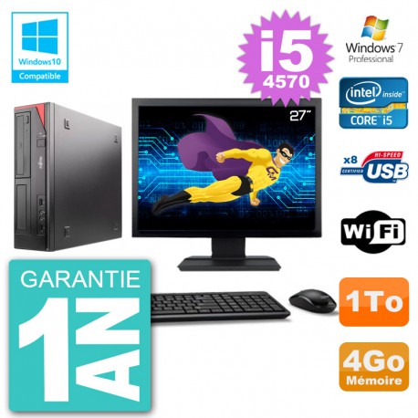 PC Fujitsu Esprimo E520 DT - Intel Core I5-4570 3.2 Ghz (Cache 6 Mo) - 4 Go DDR3 - Disque Dur 3,5" 1 To - Graveur DVD - Clé WIFI USB - Windows 7 Pro - Livré avec Ecran 27" + clavier + souris (Marques et modèles variables) - Garantie 1 an