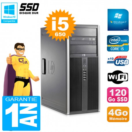 PC HP 8100 Tour Core i5-650 RAM 4Go SSD 120Go Graveur DVD Wifi W7