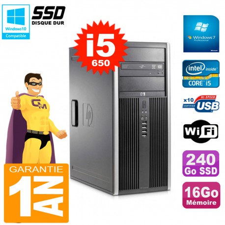 PC HP 8100 Tour Core i5-650 RAM 16Go SSD 240Go Graveur DVD Wifi W7
