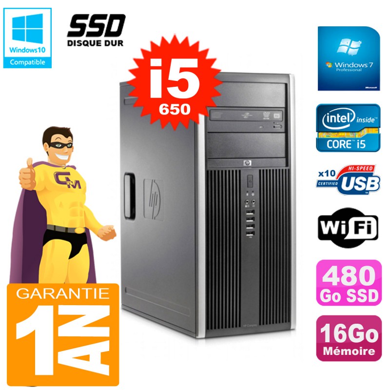 PC HP 8100 Tour Core i5-650 RAM 16Go SSD 480Go Graveur DVD Wifi W7