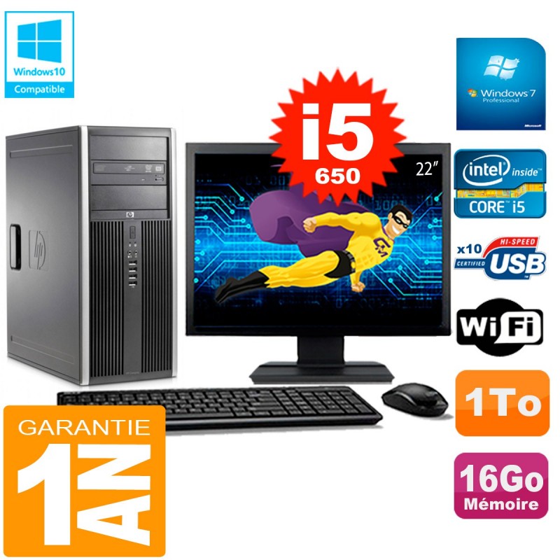 PC HP 8100 Tour Ecran 22" Core i5-650 RAM 16Go Disque 1To Graveur DVD Wifi W7