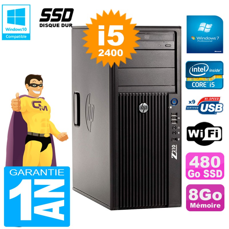 PC HP WorkStation Z210 Tour Core i5-2400 RAM 8Go SSD 480Go Graveur DVD Wifi W7