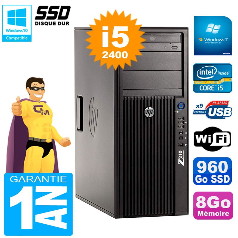 PC HP WorkStation Z210 Tour Core i5-2400 RAM 8Go SSD 960Go Graveur DVD Wifi W7