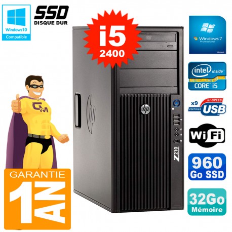PC HP WorkStation Z210 Tour Core i5-2400 RAM 32Go SSD 960Go Graveur DVD Wifi W7
