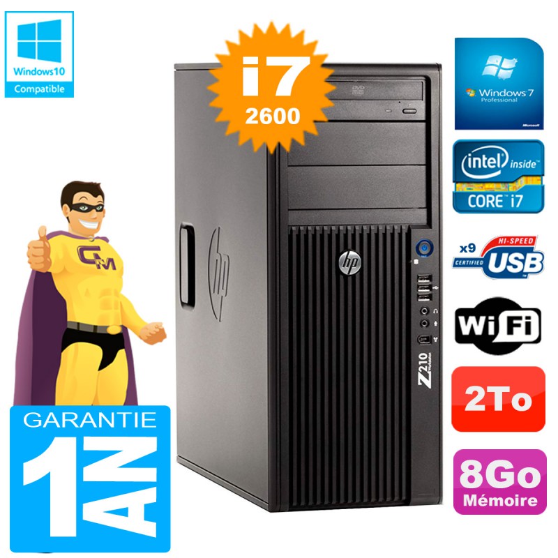 PC HP WorkStation Z210 Tour Core i7-2600 RAM 8Go 2To Graveur DVD Wifi W7