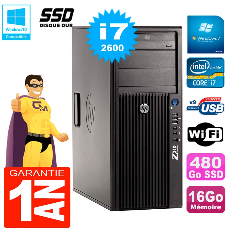 PC HP WorkStation Z210 Tour Core i7-2600 RAM 16Go SSD 480Go Graveur DVD Wifi W7